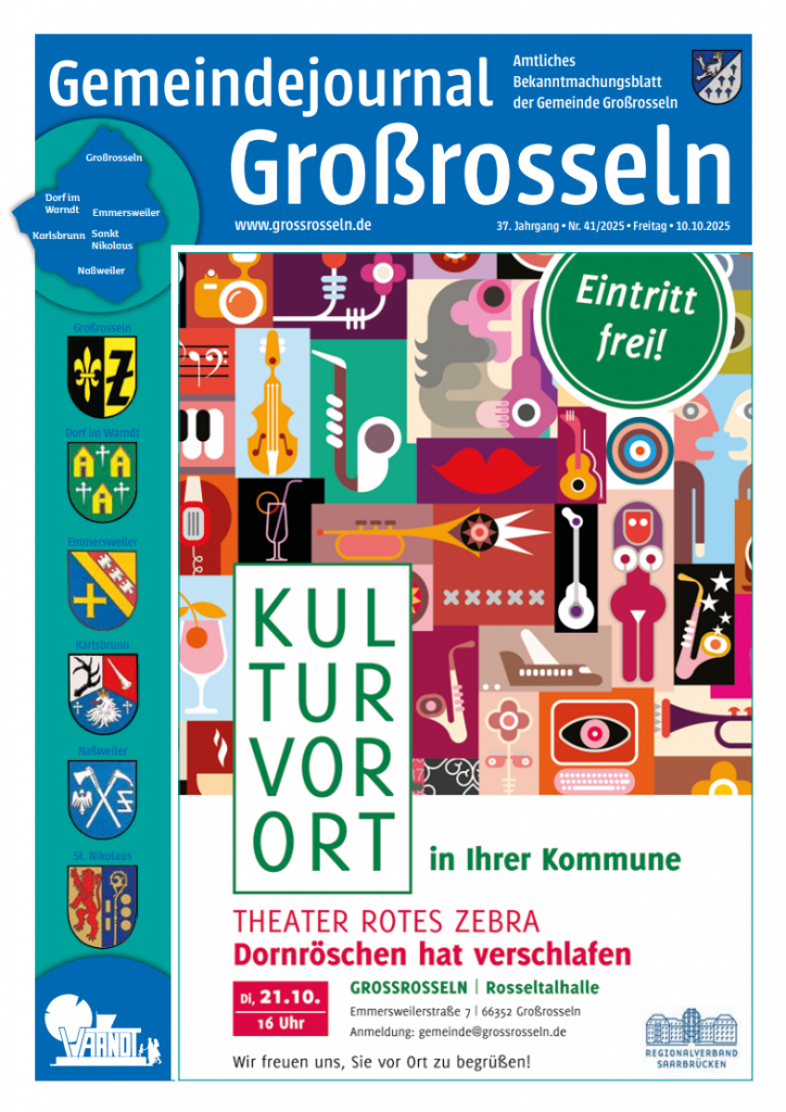 Das Bürgerbüro der Gemeinde Großrosseln hat im Monat Oktober nicht wie üblich am 1. Samstag des Monats geöffnet, sondern am 2. Samstag, den 11.10.2025 von 9.30 Uhr bis 11.30 Uhr.