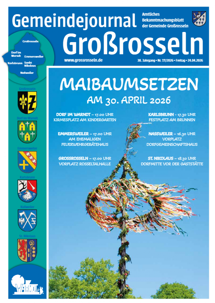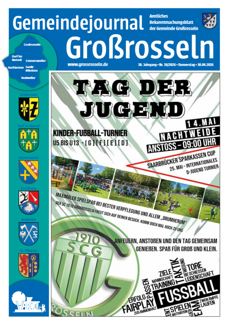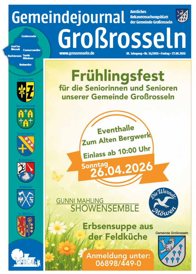 das Bürgerbüro der Gemeinde Großrosseln hat im Mai 2026 nicht am ersten Samstag des Monats, sondern am Samstag, den 09.05.2026 von 9.30 Uhr bis 11.30 Uhr geöffnet.