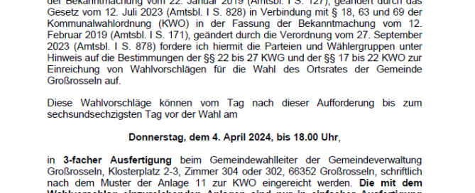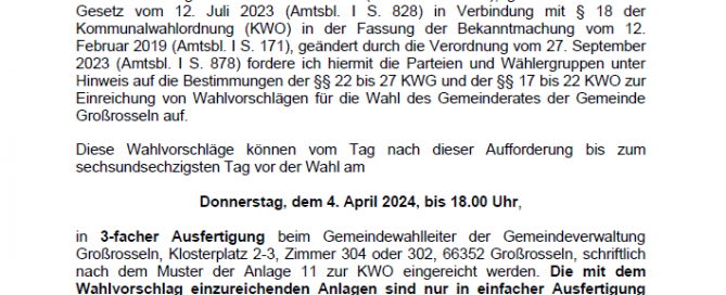 Öffentliche Bekanntmachung Nummer 75/2023 vom 21.12.2023