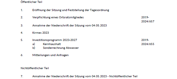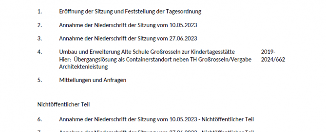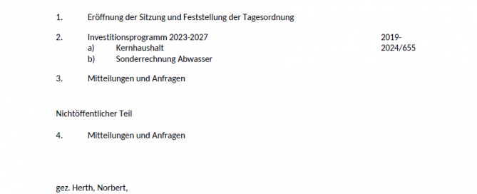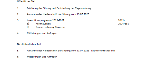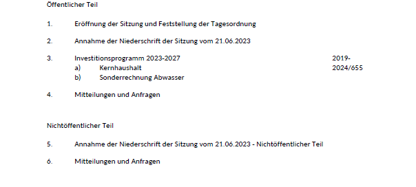 Öffentliche Bekanntmachung Nummer 45/2023 vom 06.09.2023