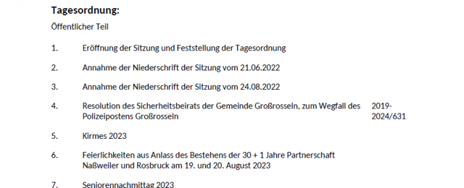 19. Sitzung des Ortsrates Dorf im Warndt Inhalt der öffentlichen Bekanntmachung: Bekanntmachung über die 19. Sitzung des Ortsrates Dorf im Warndt am Donnerstag, 13.07.2023 um 17:30 Uhr. Gemäß § 1 Abs. 1 der Satzung der Gemeinde Großrosseln über die Form der öffentlichen Bekanntmachung vom 05. November 2020 wird öffentlich bekanntgemacht … Download als PDF < Zurück