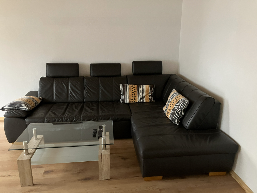 Wohnzimmer mit großem Flatscreen und einer großen, hochwertigen und sehr bequemen 2-Betttcouch (1,40 x 200)