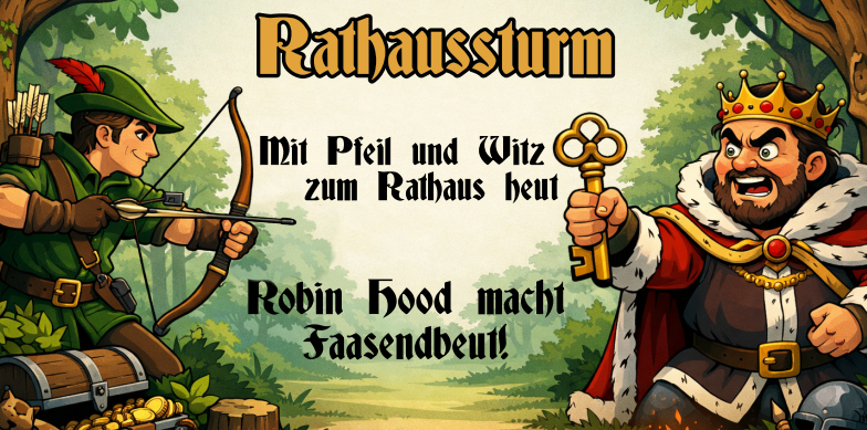 „Mit Pfeil und Witz zum Rathaus heut – Robin Hood macht Faasendbeut!“